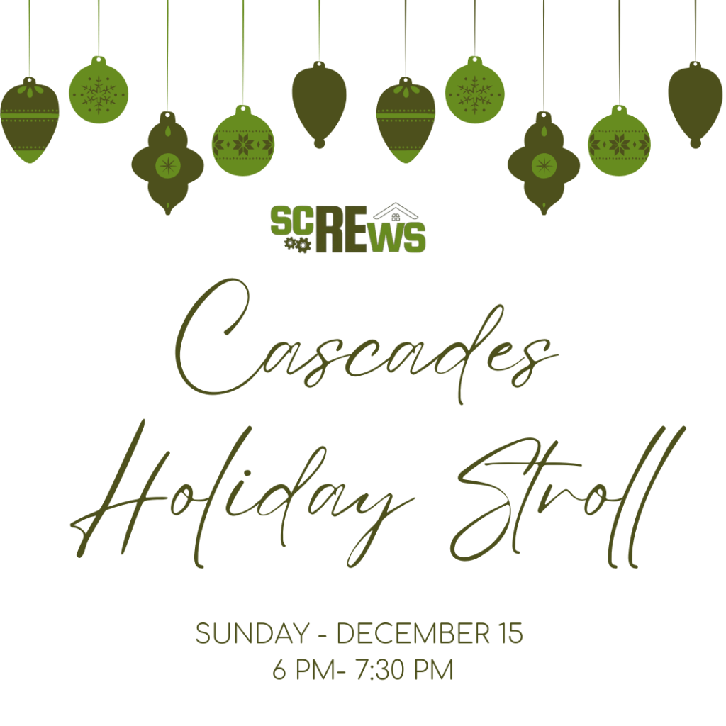 Cascades Holiday Stroll – S.C.R.E.W.S. Tent (Near the Cascades Fountain)